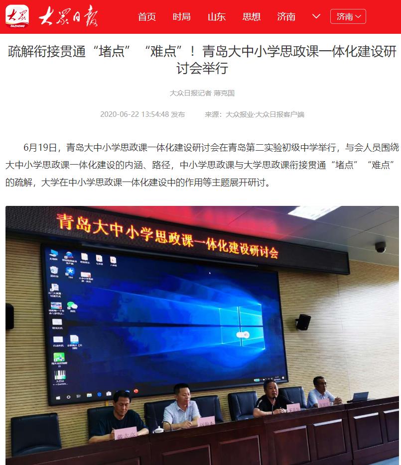 大众日报客户端:疏解衔接贯通“堵点”“难点”!青岛大中小学思政课一体化建设研讨会举行