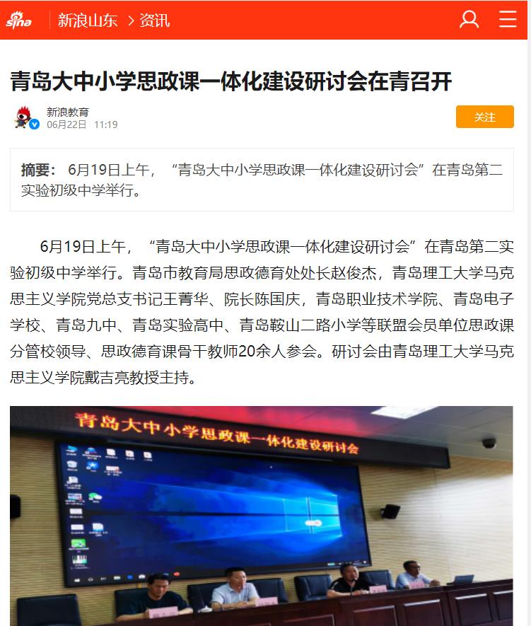 新浪:青岛大中小学思政课一体化建设研讨会在青召开