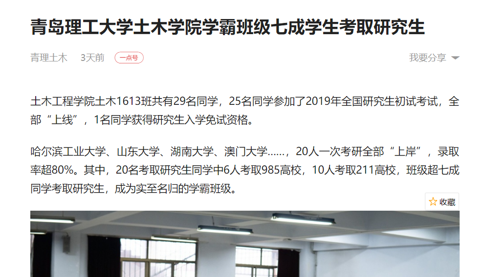 一点资讯:青岛理工大学土木学院学霸班级七成学生考取研究生
