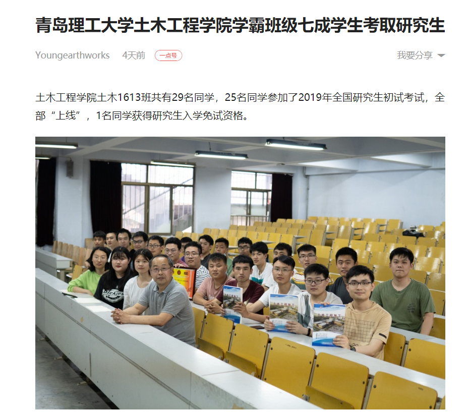 一点资讯:青岛理工大学土木工程学院学霸班级七成学生考取研究生