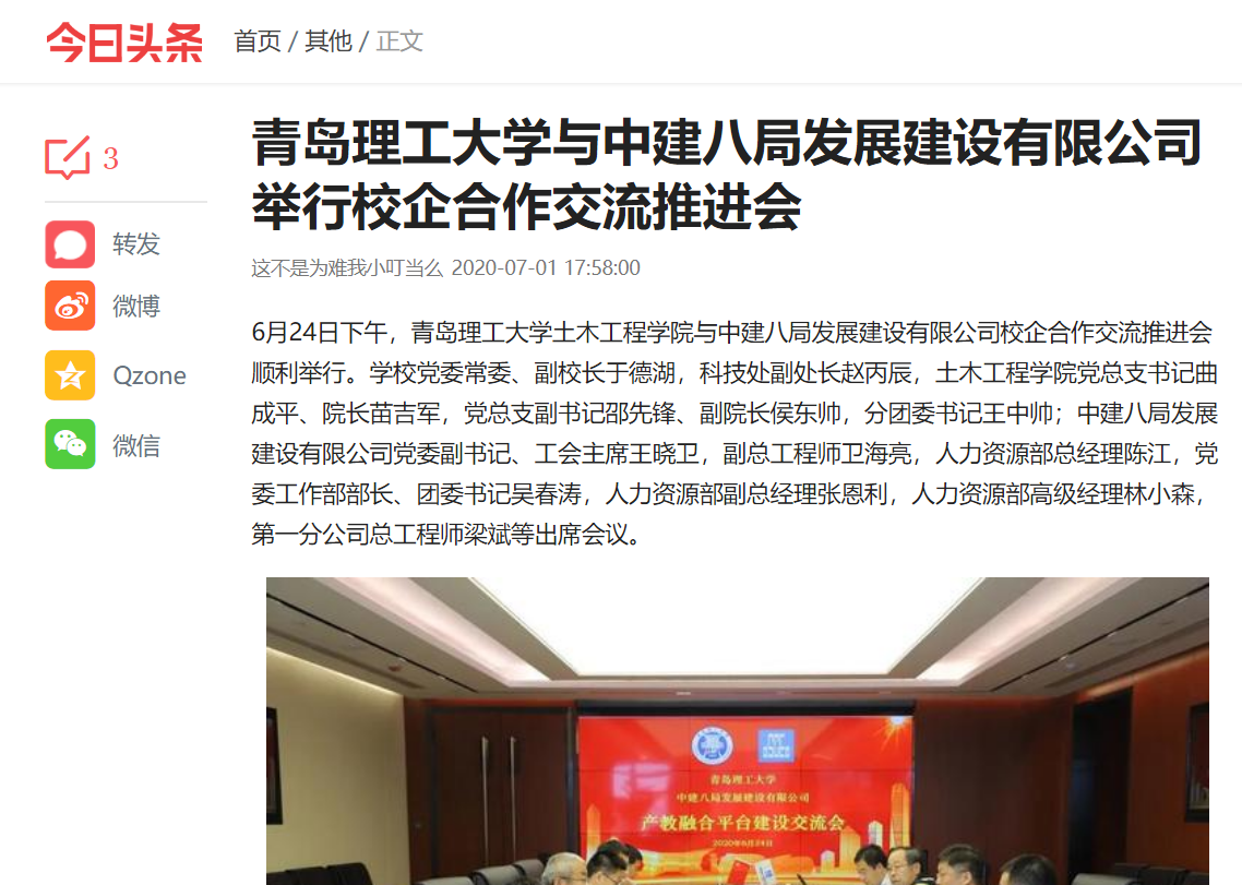 今日头条:青岛理工大学与中建八局发展建设有限公司举行校企合作交流推进会