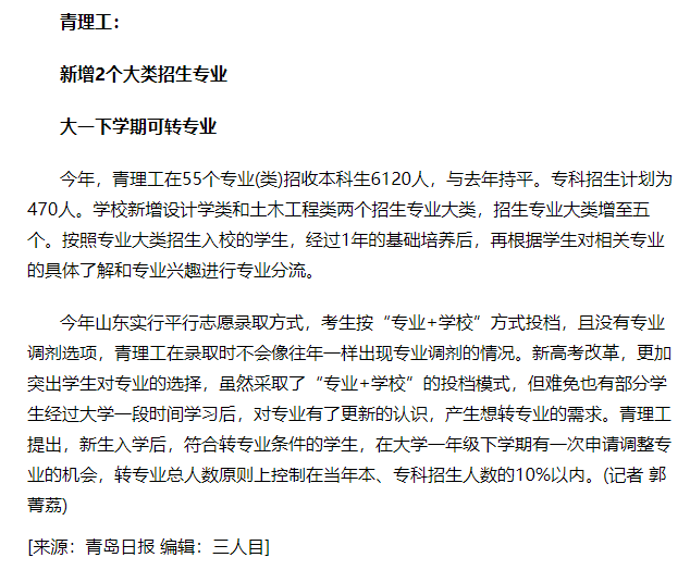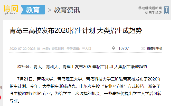 信网:青岛三高校发布2020招生计划 大类招生成趋势