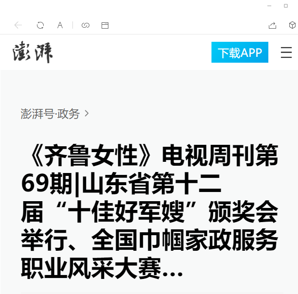 澎湃号:《齐鲁女性》电视周刊第69期|山东省第十二届“十佳好军嫂”颁奖会举行、全国巾帼家政服务职业风采大赛