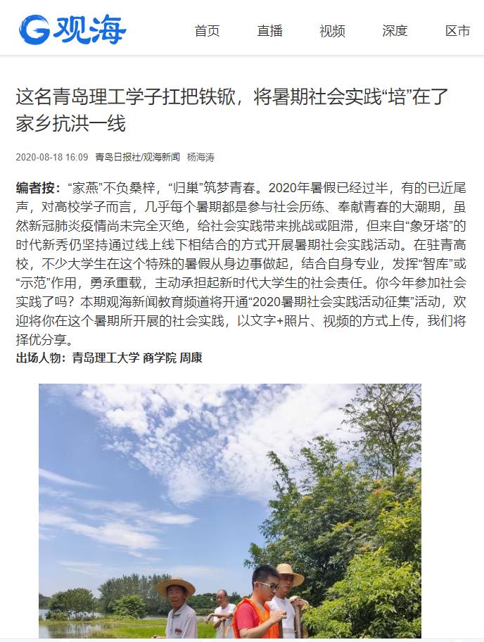 观海:这名青岛理工学子扛把铁锨,将暑期社会实践“培”在了家乡抗洪一线
