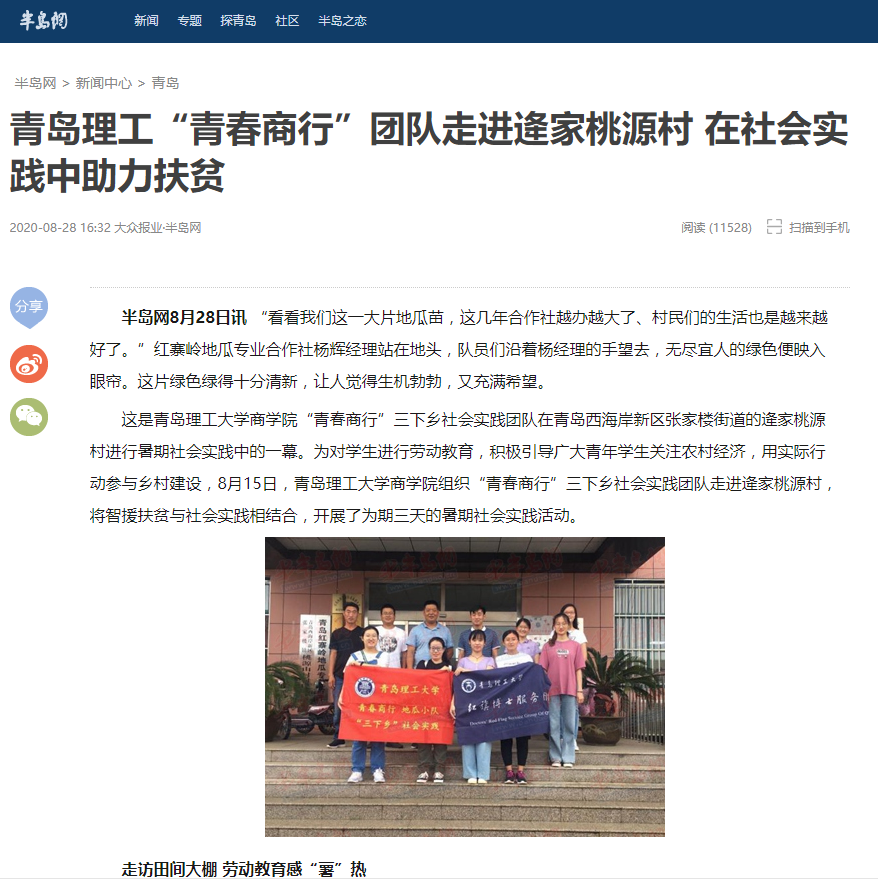 半岛网:青岛理工“青春商行”团队走进逄家桃源村 在社会实践中助力扶贫