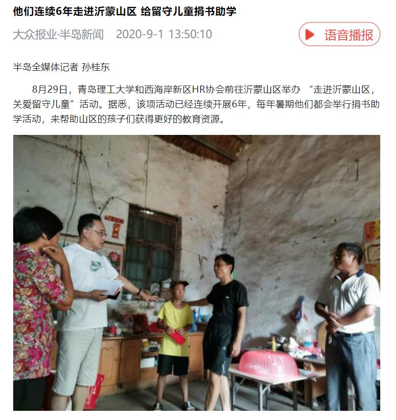 半岛新闻:他们连续6年走进沂蒙山区 给留守儿童捐书助学