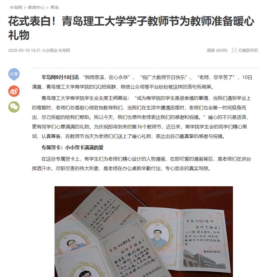 大众网、海报新闻:教师节爱意满满!理工学子为教师准备暖心礼物