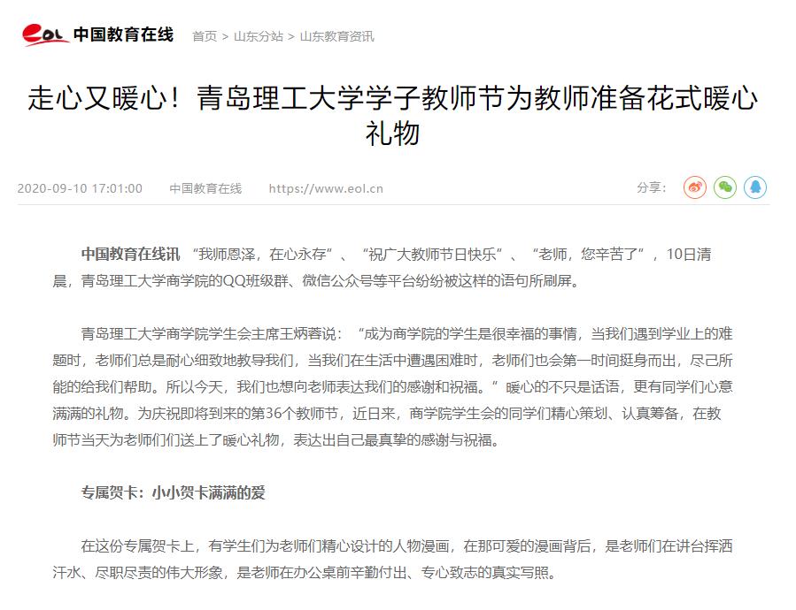 新浪:青岛理工大学学子教师节为教师准备花式暖心礼物