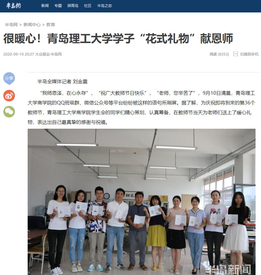 半岛网:很暖心!青岛理工大学学子“花式礼物”献恩师