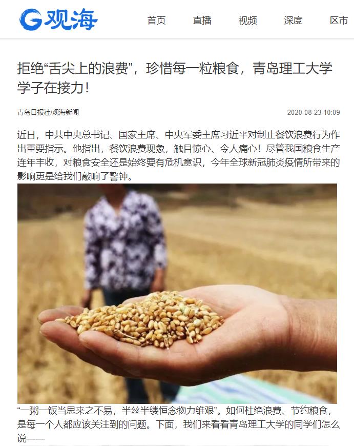 观海客户端:拒绝“舌尖上的浪费”,珍惜每一粒粮食,青岛理工大学学子在接力