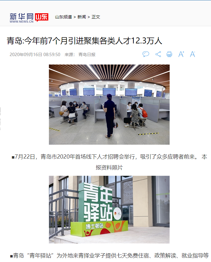 新华网:青岛:今年前7个月引进聚集各类人才12.3万人