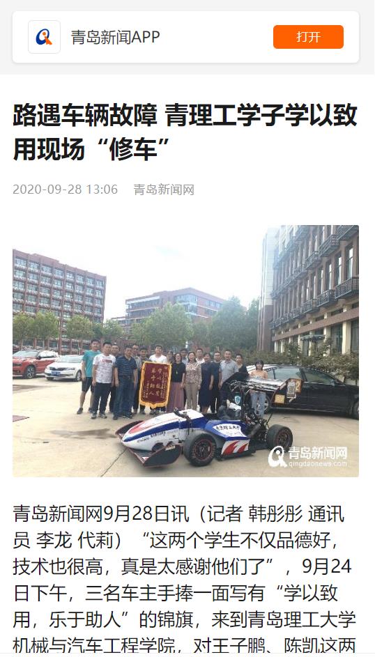 青岛新闻网:路遇车辆故障 青理工学子学以致用现场“修车”