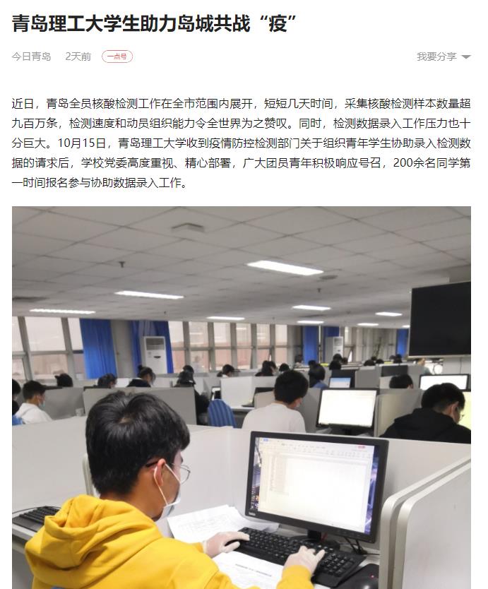 中国教育在线:两天完成十万余条数据录入 青岛理工大学生助力岛城共战“疫”