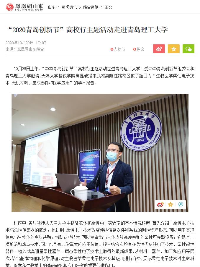 凤凰网:“2020青岛创新节”高校行主题活动走进青岛理工大学