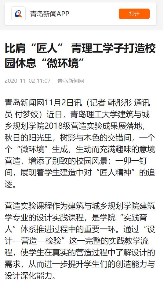 青岛新闻网:比肩“匠人” 青理工学子打造校园休息“微环境”