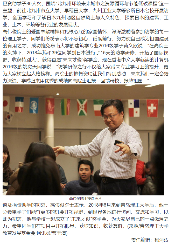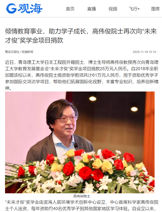 青岛日报社/观海新闻:倾情教育事业,助力学子成长,高伟俊院士再次向“未来才俊”奖学金项目捐款