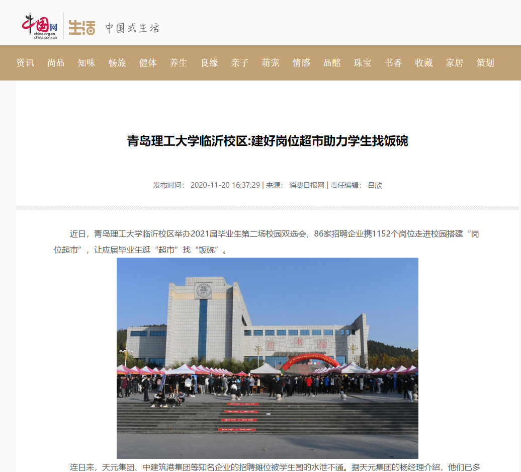 中国网/生活:青岛理工大学临沂校区 建好岗位超市助力学生找饭碗