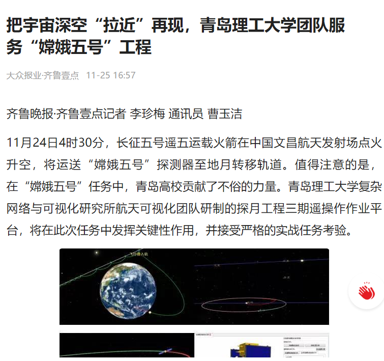 青岛财经网;青岛理工大复杂网络与可视化研究所为“嫦娥五号”任务保驾护航