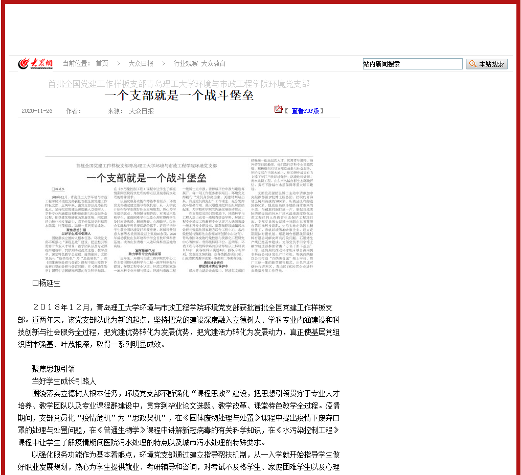 大众日报:一个支部就是一个战斗堡垒