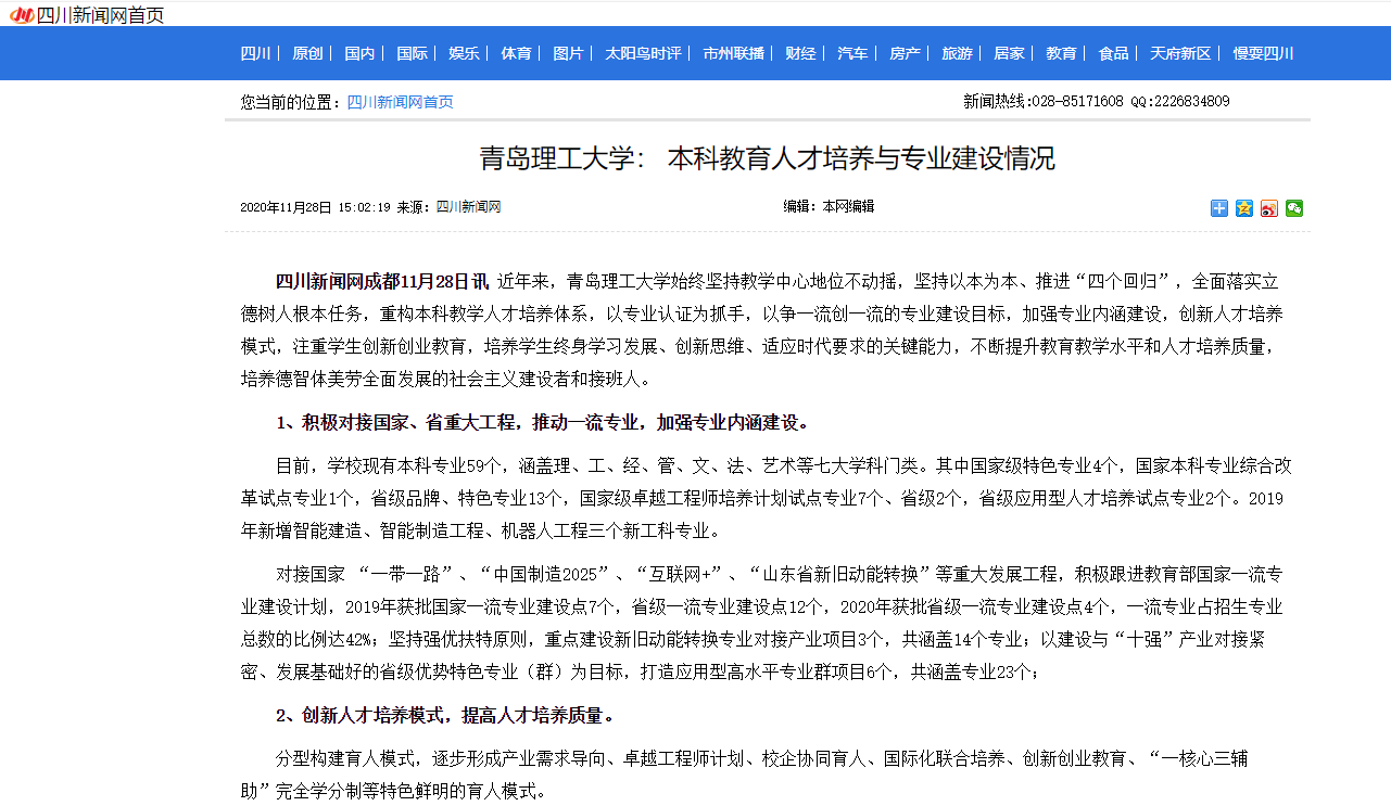 四川新闻网成都11月28日讯近年来,青岛理工大学始终坚持教学中心地位不动摇,坚持以本为本、推进“四个回归”,全面落实立德树人根本任务,重构本科教学人才培养体系,以专业认证为抓手,以争一流创一流的专业建设目标,加强专业内涵建设,创新人才培养模式,注重学生创新创业教育,培养学生终身学习发展、创新思维、适应时代要求的关键能力,不断提升教育教学水平和人才培养质量,培养德智体美劳全面发展的社会主义建设者和接班人。
