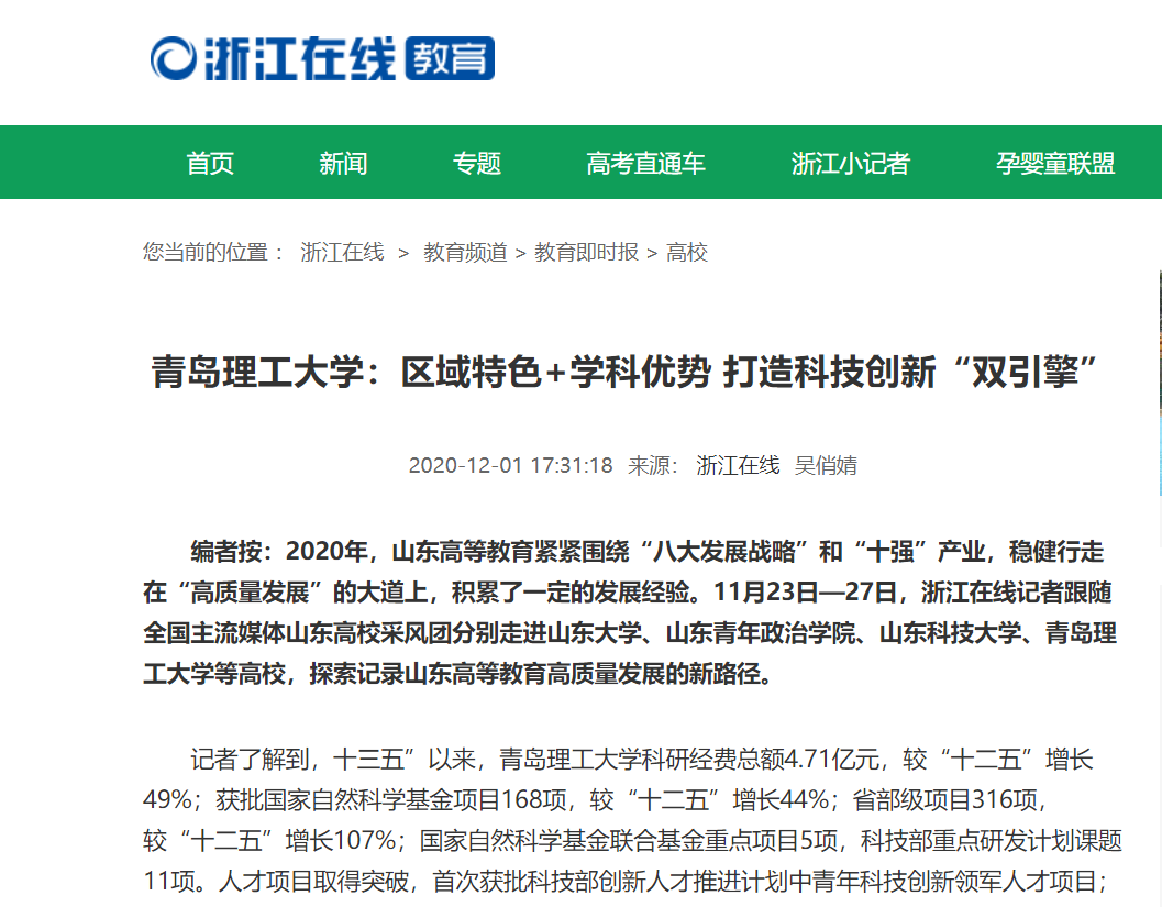 编者按:2020年,山东高等教育紧紧围绕“八大发展战略”和“十强”产业,稳健行走在“高质量发展”的大道上,积累了一定的发展经验。11月23日—27日,浙江在线记者跟随全国主流媒体山东高校采风团分别走进山东大学、山东青年政治学院、山东科技大学、青岛理工大学等高校,探索记录山东高等教育高质量发展的新路径。