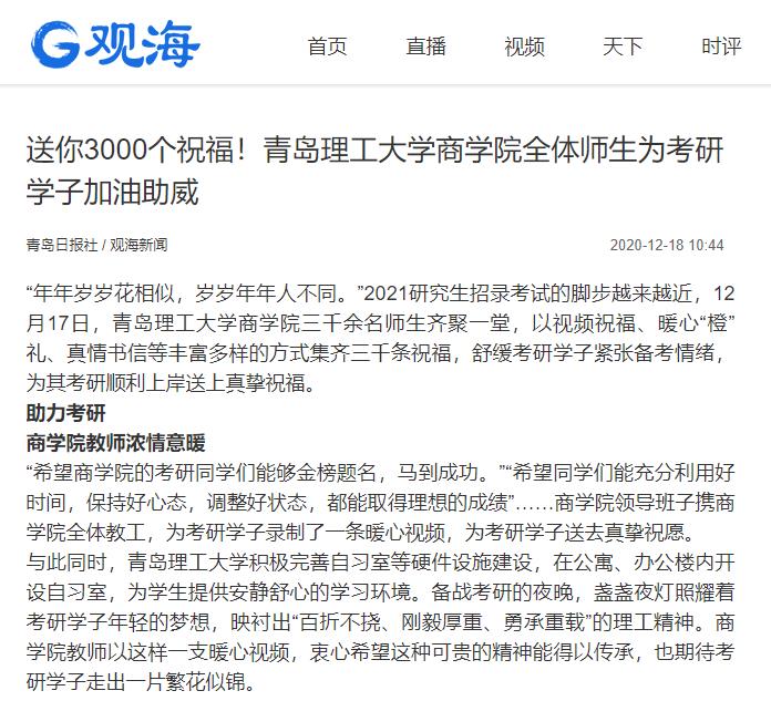 观海新闻:送你3000个祝福!青岛理工大学商学院全体师生为考研学子加油助威
