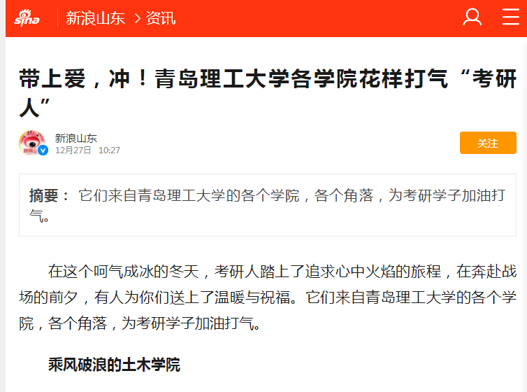 在这个呵气成冰的冬天,考研人踏上了追求心中火焰的旅程,在奔赴战场的前夕,有人为你们送上了温暖与祝福。它们来自青岛理工大学的各个学院,各个角落,为考研学子加油打气。