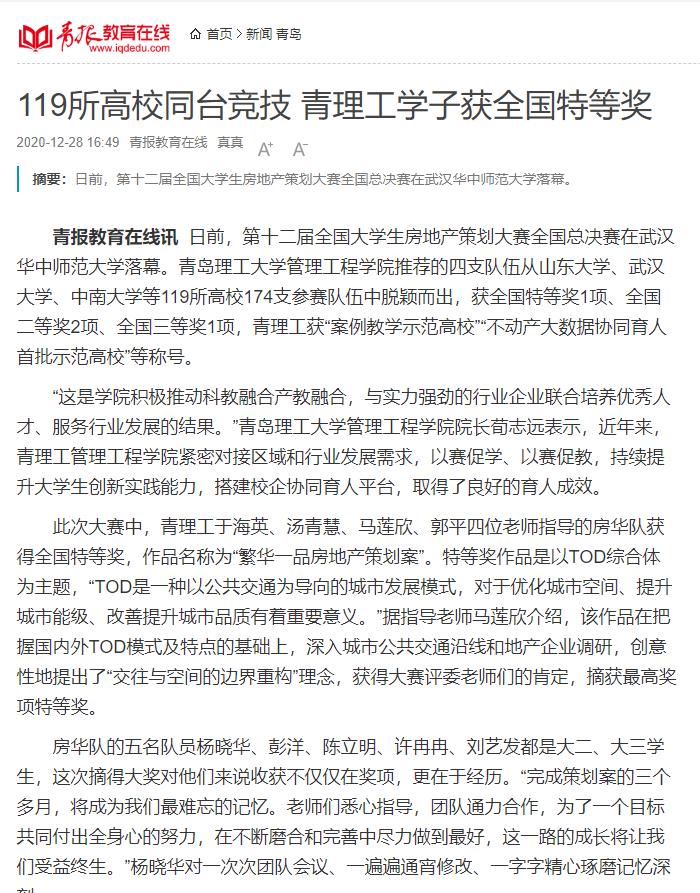 青报教育在线:119所高校同台竞技 青理工学子获全国特等奖