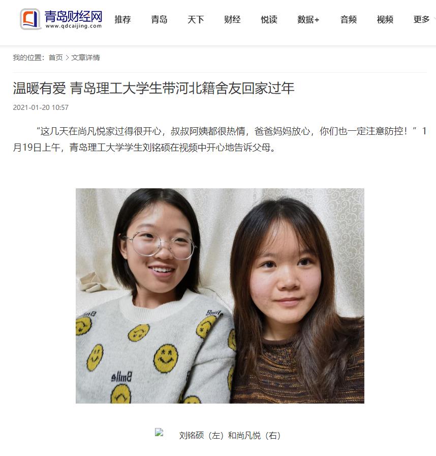 青岛财经网:温暖有爱 青岛理工大学生带河北籍舍友回家过年
