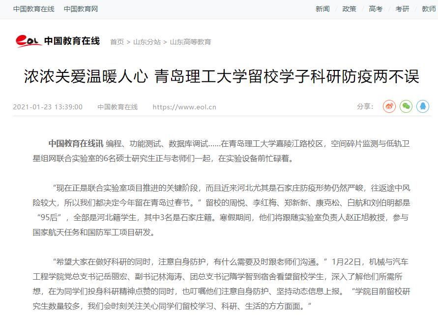 中国教育在线:浓浓关爱温暖人心 青岛理工大学留校学子科研防疫两不误