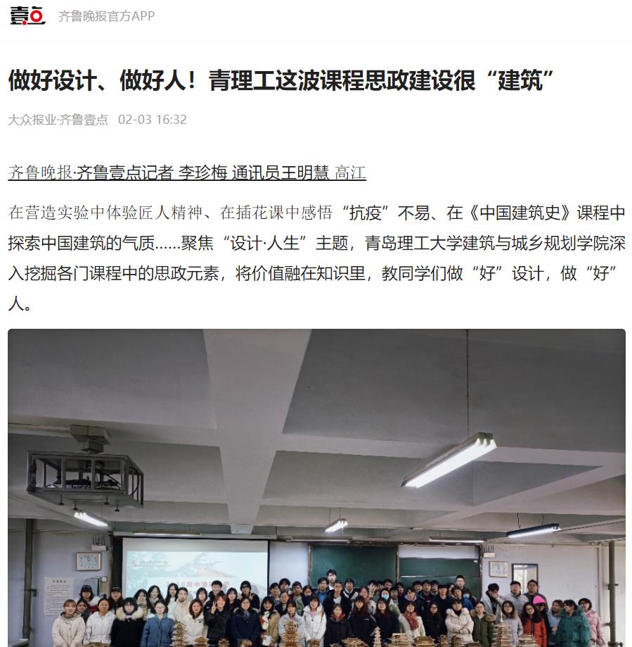 齐鲁壹点:做好设计、做好人!青理工这波课程思政建设很“建筑”