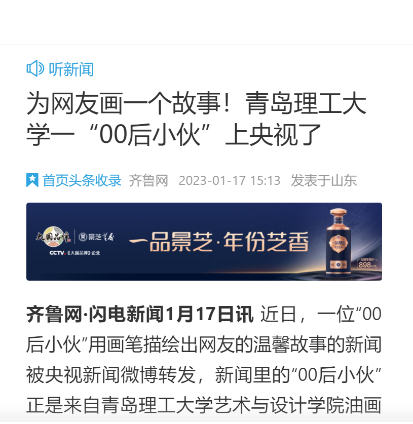 齐鲁网 闪电新闻:为网友画一个故事!青岛理工大学一“00后小伙”上央视了