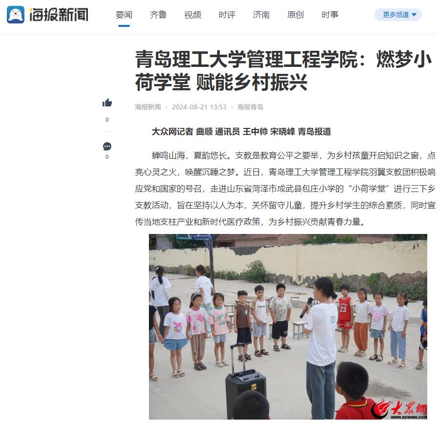 大众网·青岛:青岛理工大学管理工程学院:燃梦小荷学堂 赋能乡村振兴