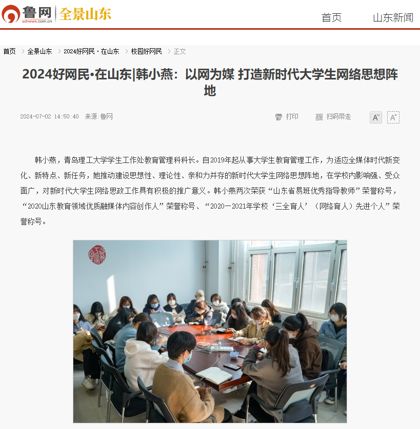 鲁网:2024好网民·在山东|韩小燕:以网为媒 打造新时代大学生网络思想阵地