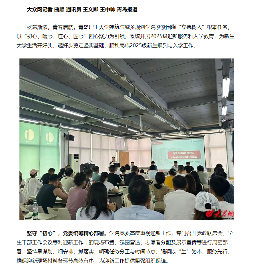 【大众网·青岛】青岛理工大学建筑与城乡规划学院:“四心”聚力迎新生,多维助力学子扬帆起航