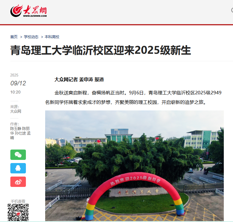 【大众网】青岛理工大学临沂校区迎来2025级新生