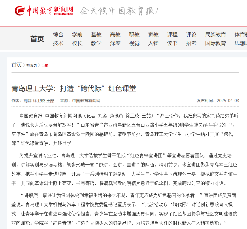 【中国教育新闻网】青岛理工大学:打造“跨代际”红色课堂