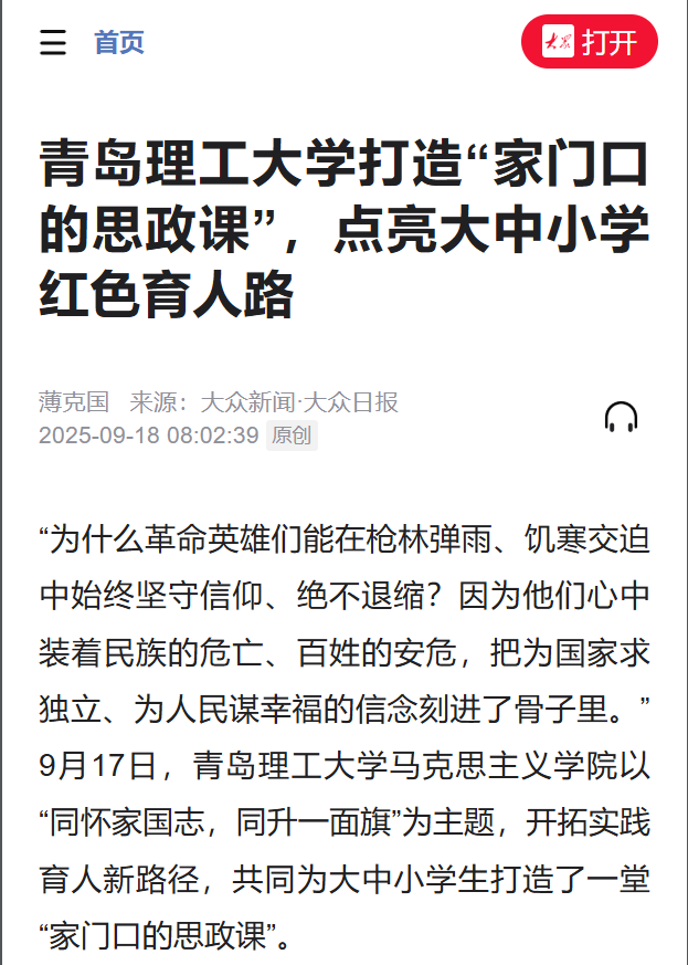 【大众新闻客户端】青岛理工大学打造“家门口的思政课”,点亮大中小学红色育人路