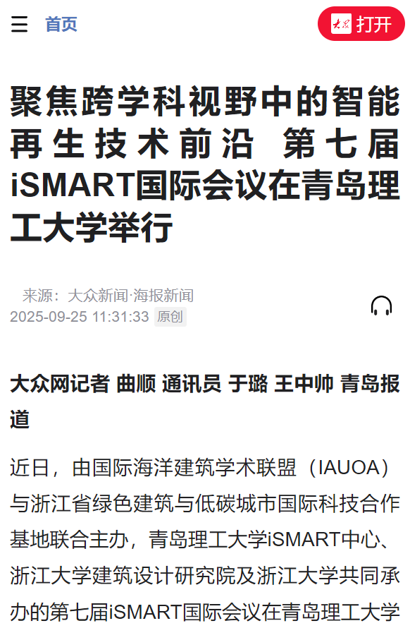 【大众新闻·海报新闻客户端】聚焦跨学科视野中的智能再生技术前沿 第七届iSMART国际会议在青岛理工大学举行