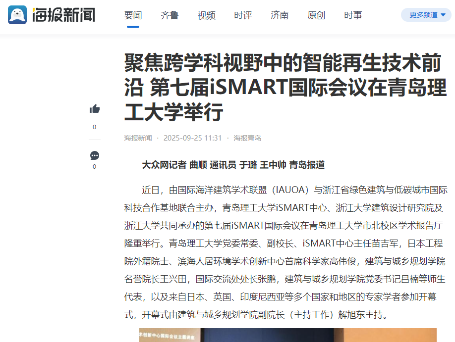 【海报新闻】聚焦跨学科视野中的智能再生技术前沿 第七届iSMART国际会议在青岛理工大学举行