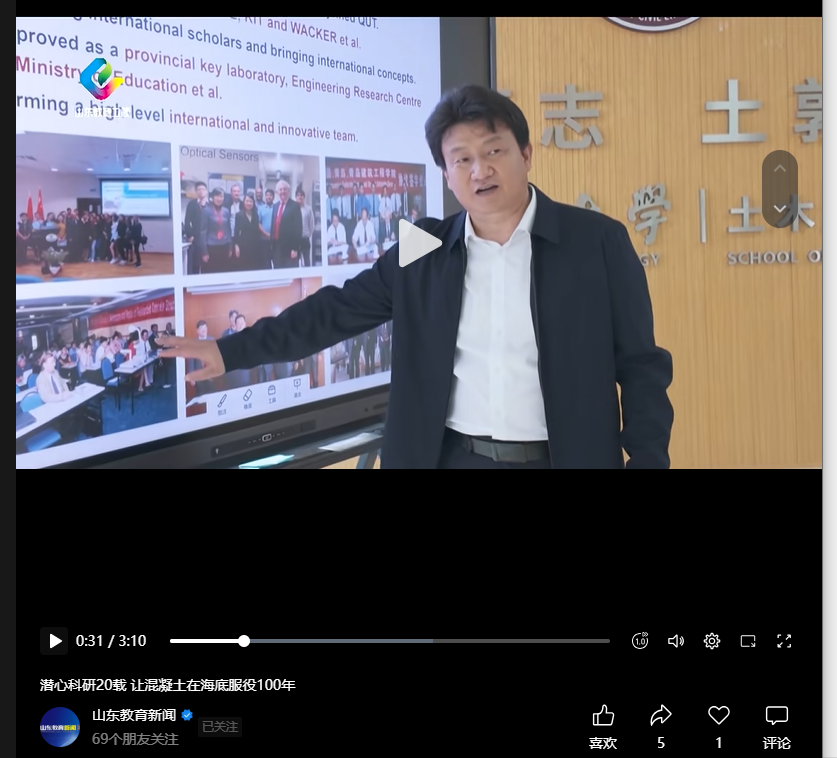 【山东教育新闻】潜心科研20载 让混凝土在海底服役100年