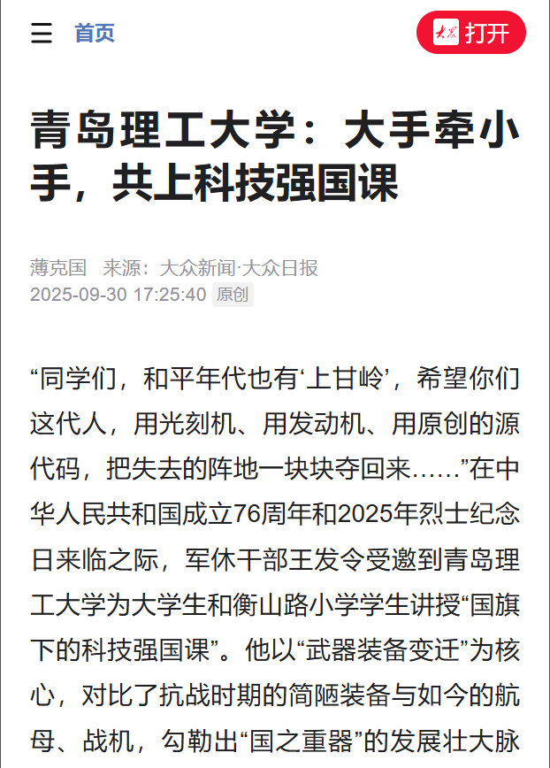 【大众新闻·大众日报】青岛理工大学:大手牵小手,共上科技强国课
