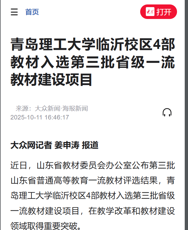 【大众新闻·海报新闻】青岛理工大学临沂校区4部教材入选第三批省级一流教材建设项目