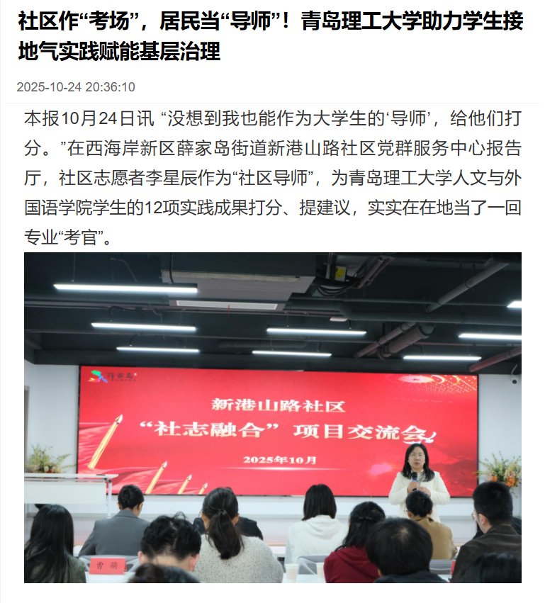 【大众·半岛新闻】“考场”搬进社区,居民当起“导师”!青岛理工大学让学生实习实...