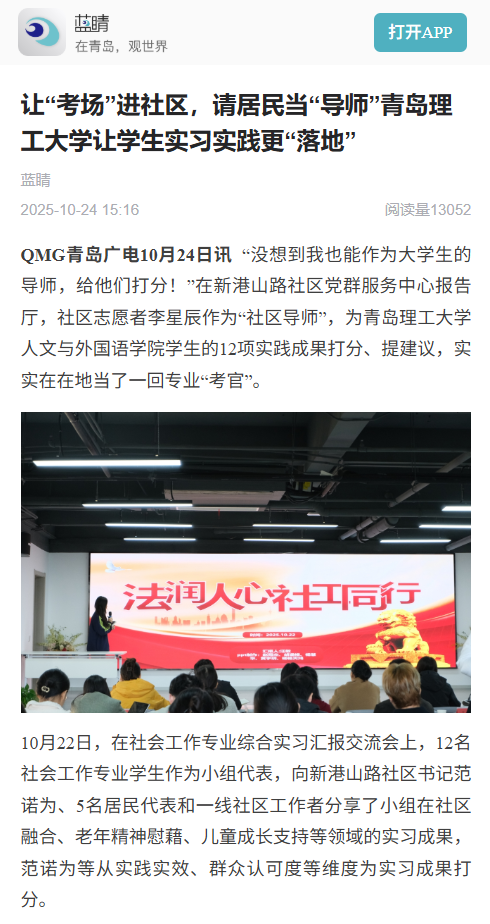 【蓝睛】让“考场”进社区,请居民当“导师”青岛理工大学让学生实习实践更“落地”