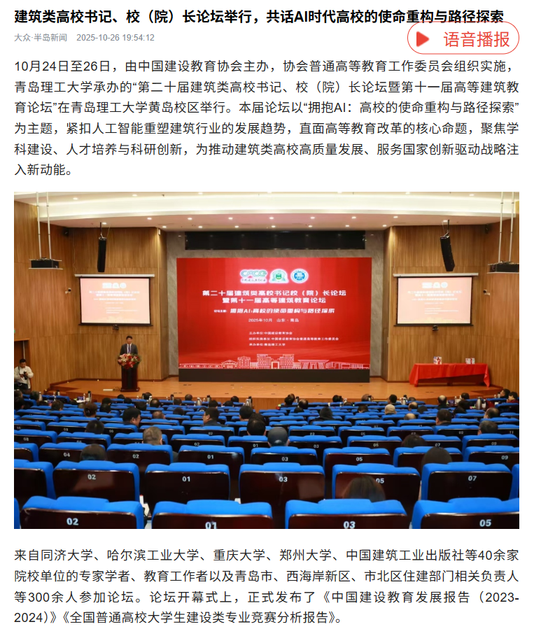 【大众·半岛新闻】建筑类高校书记、校(院)长论坛举行,共话AI时代高校的使命重构与路径探索