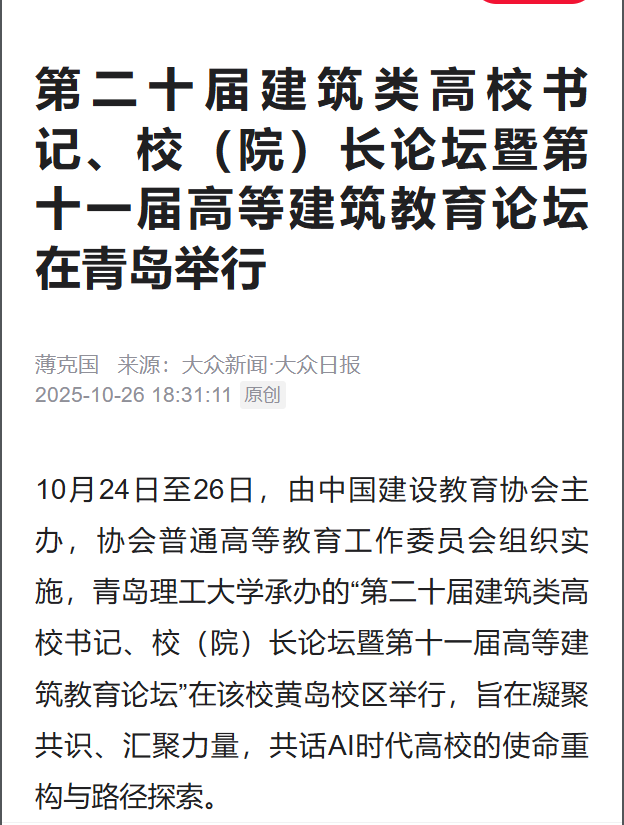 【掌上青岛】拥抱AI,建筑类高校澎湃新动能!第二十届建筑类高校书记、校(院)长...