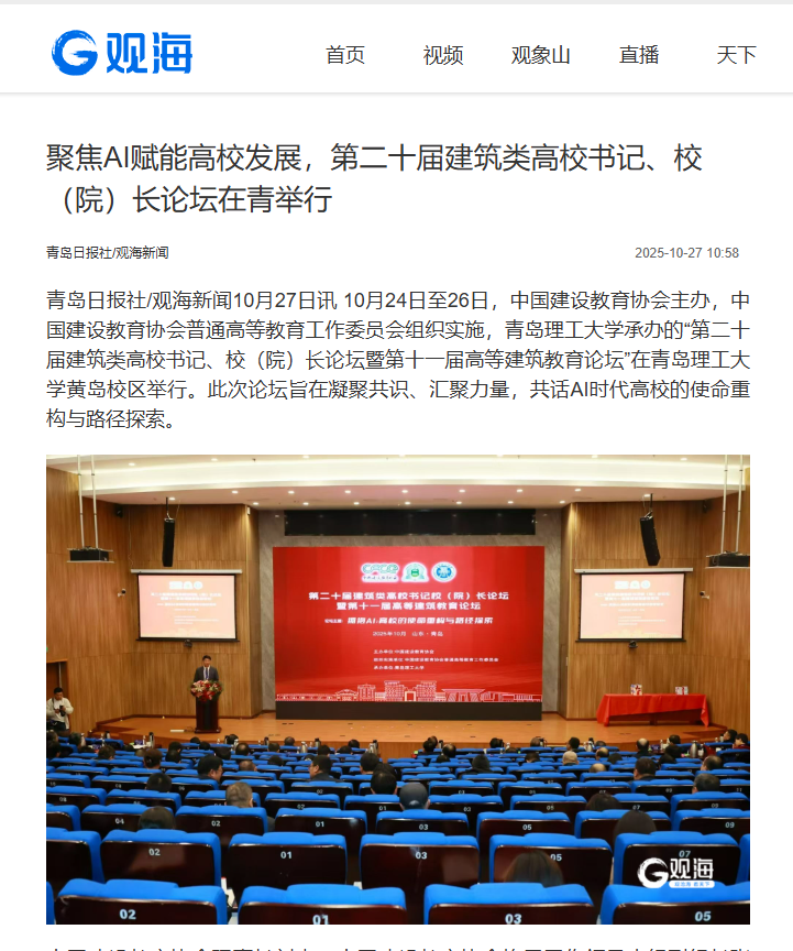 【青岛日报社/观海新闻】聚焦AI赋能高校发展,第二十届建筑类高校书记、校(院)长论坛在青举行