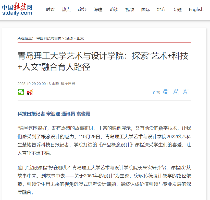 【中国科技网】青岛理工大学艺术与设计学院:探索“艺术+科技+人文”融合育人路径