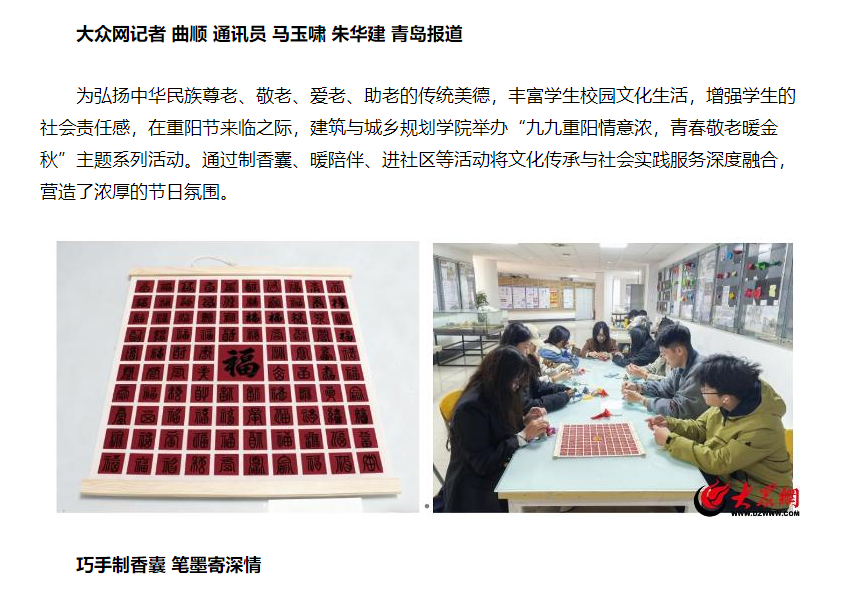 【大众网·青岛】青岛理工大学建筑与城乡规划学院开展“九九重阳情意浓,青春敬老暖金秋”传统节日活动